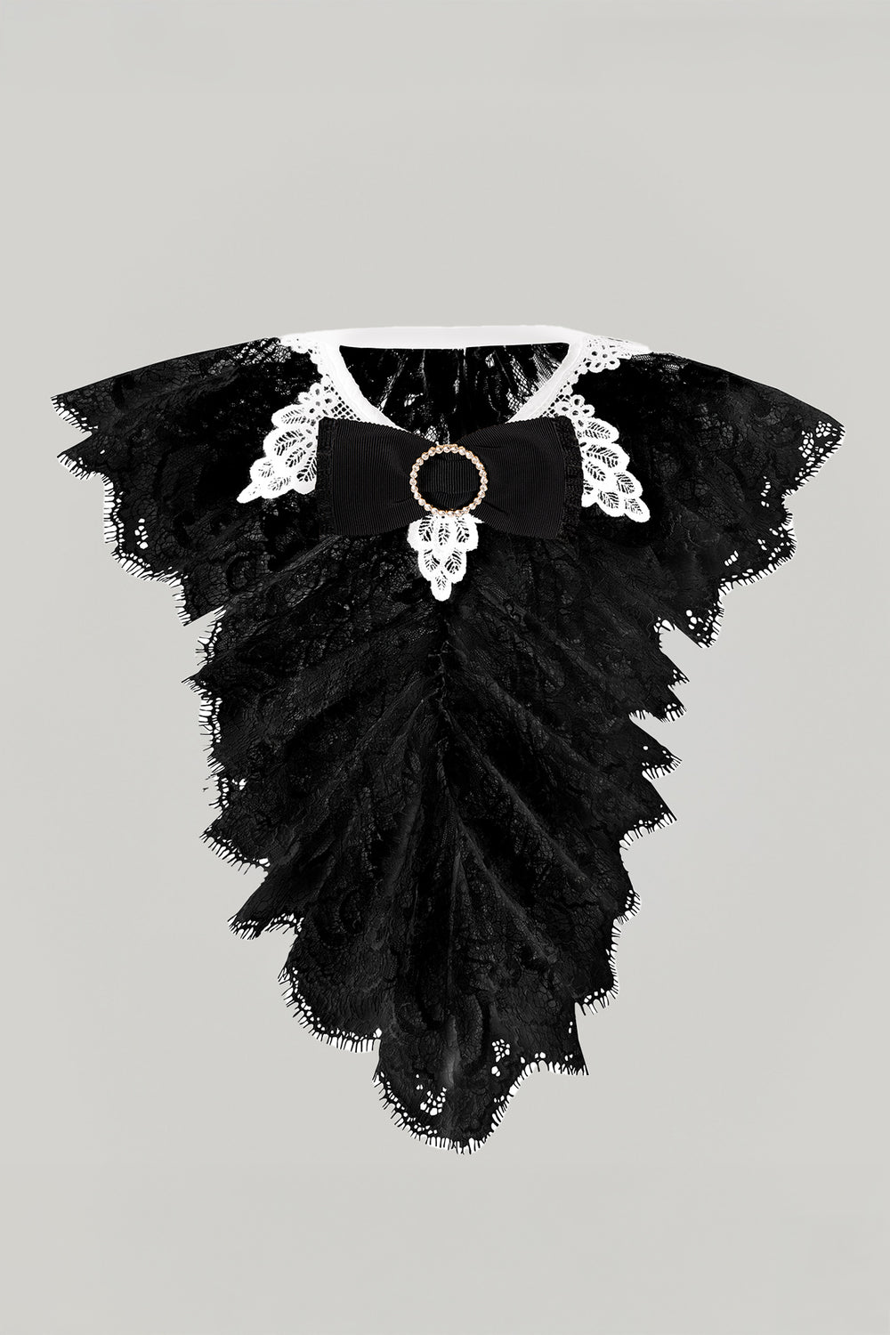 Anne Ruffled Cotton Lace Jabot In black and Ivory