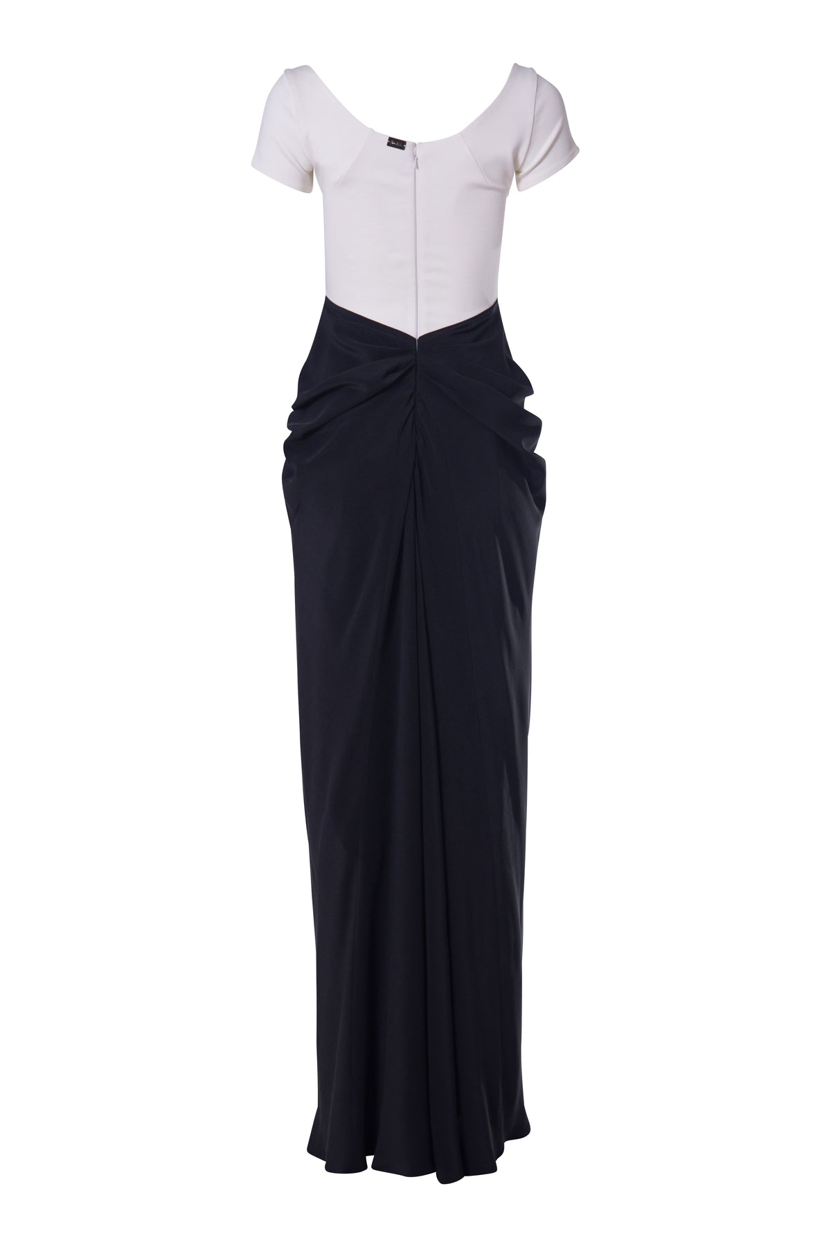 - Floor-length silk draped skirt