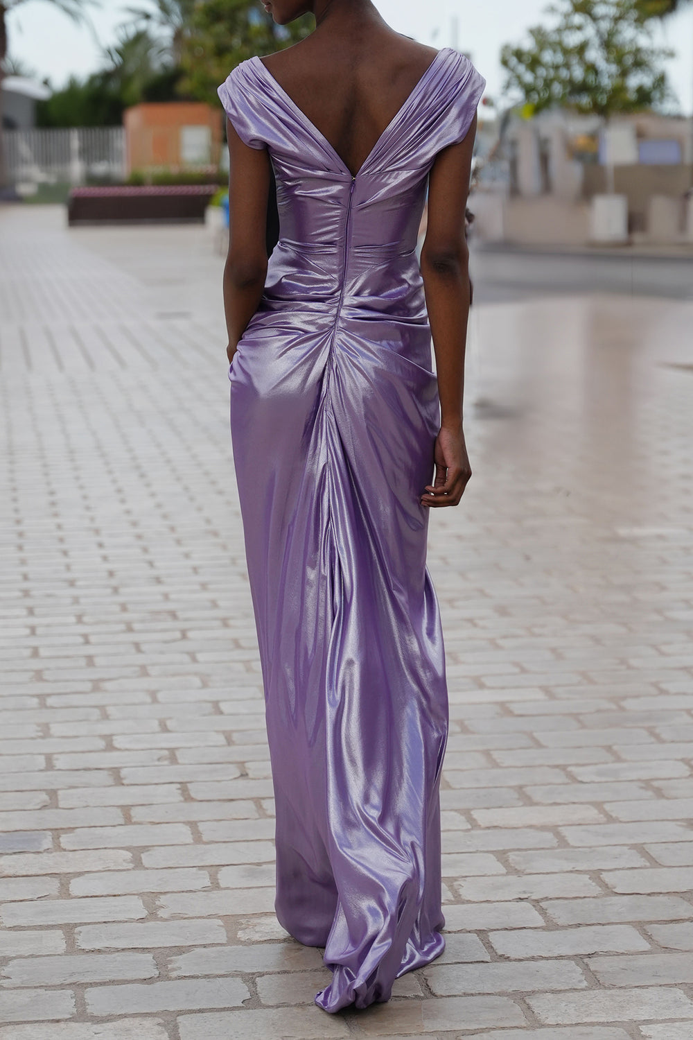 - Elegant draping on the hips adds a touch of timeless refinement.