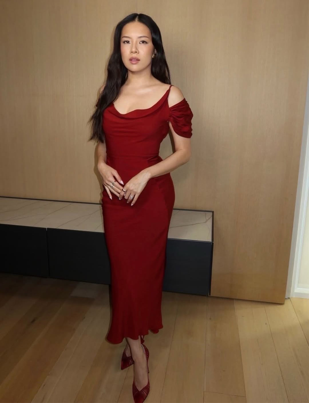 at the 2024 Children's Hospital Los Angeles Gala wearing Alba Red Crepe Long Dress
