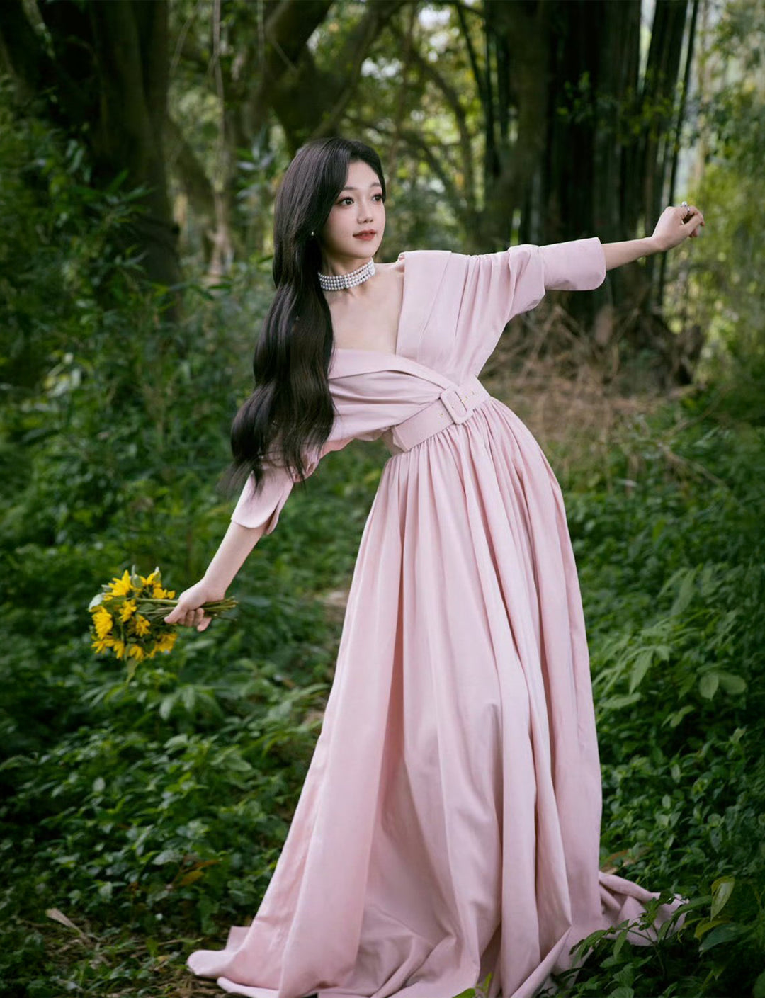 in the Raven Soft Lilac Crepe Long Dress she choose for the Venice Film Festival