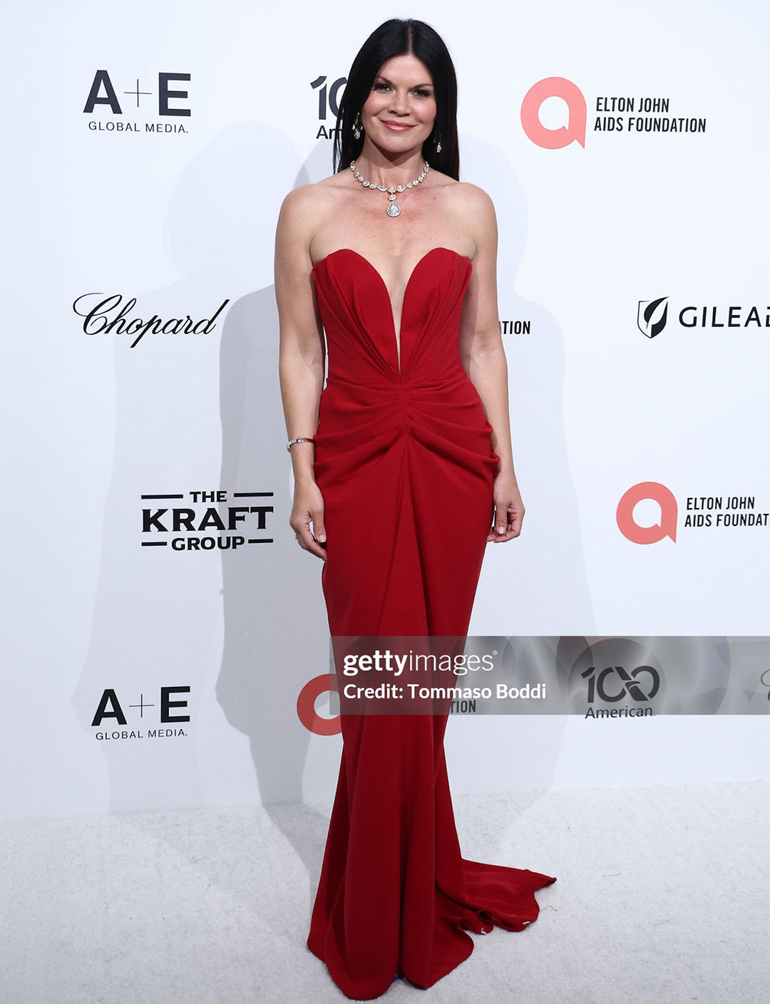 wearing Orea gown at the Elton John AIDS Foundation's 34th Annual Academy Awards Viewing Party