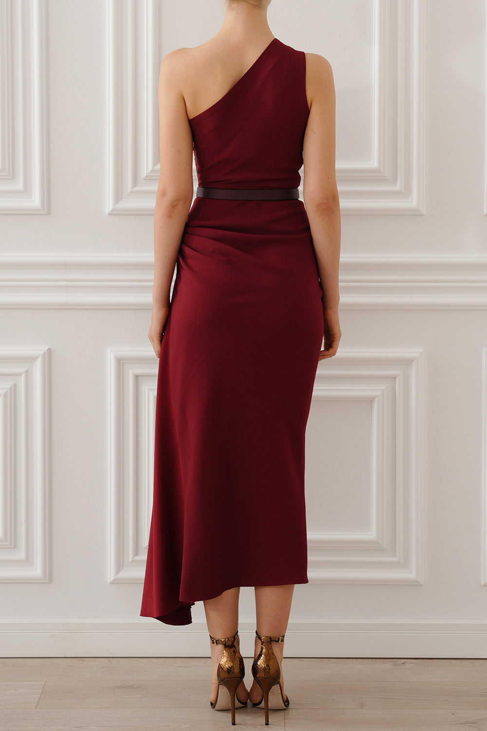 The Charlotte Midi Dress embodies modern elegance with its bias-cut structure, clean lines, and sophisticated details, making it perfect for formal occasions and special events.